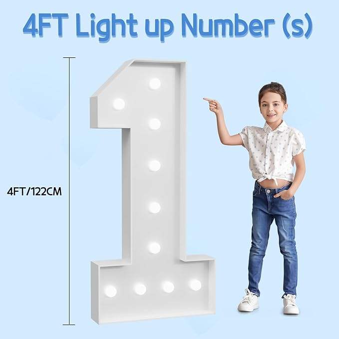 Numeri Luminosi Grandi da Interno 1,2 m Numero 1 Decorazione per Feste Primo Compleanno per Bambino e Bambina di Un Anno