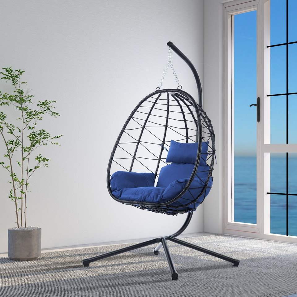 Indoor/Outdoor Egg Chair Stand Swing Patio Wicker Hanging Basket Chair Hammock for Bedroom Living Room Balcony Swing Chair for
