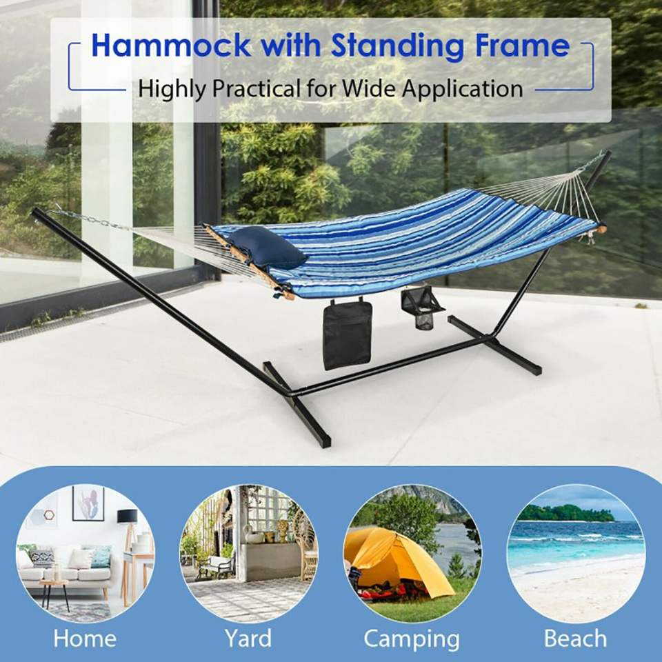 Set di Sedia Amaca da Interno/Esterno con Cuscino in Cotone e Portabicchieri