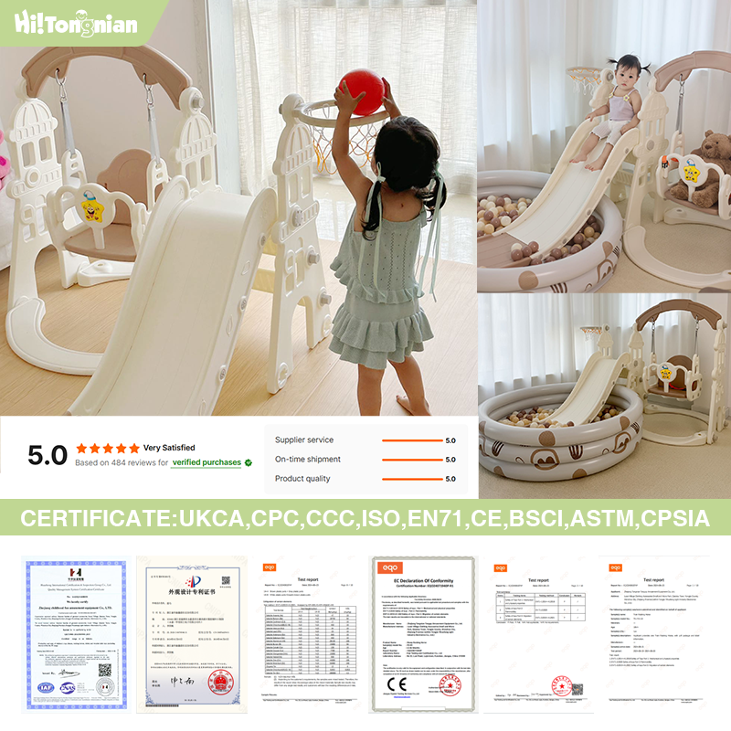 Indoor Playground Hdpe Kids Playhouse 5 in 1 Children Swing Set Combined Baby Slide with Basketball Hoop and Football Gate