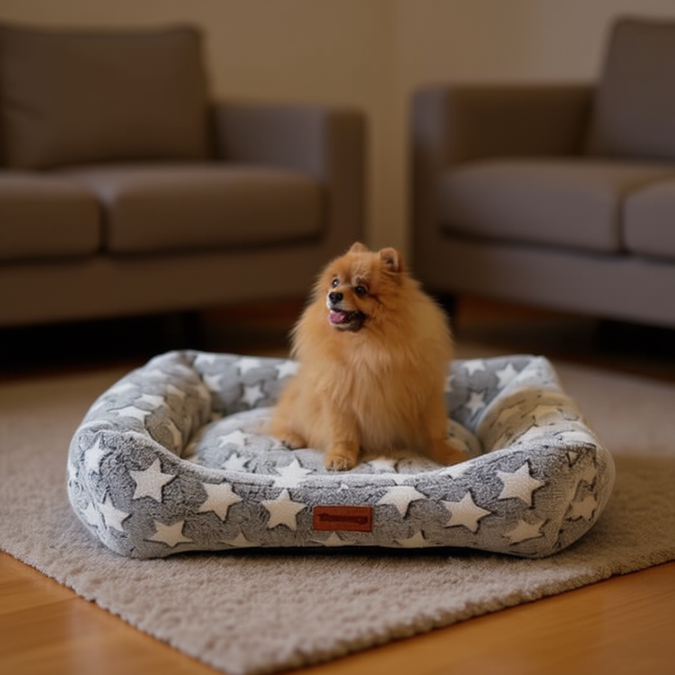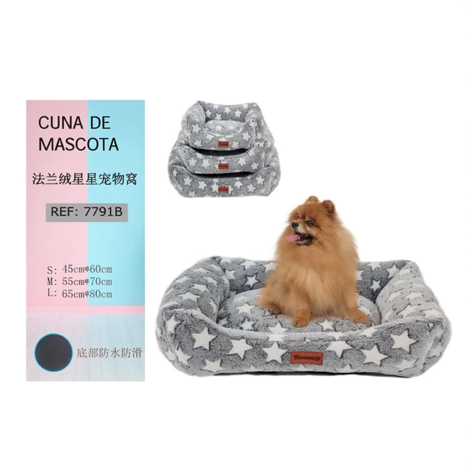 Indoor Rectangle-shaped Coral Fleece Dog Bed with Star Pattern Hand Washable