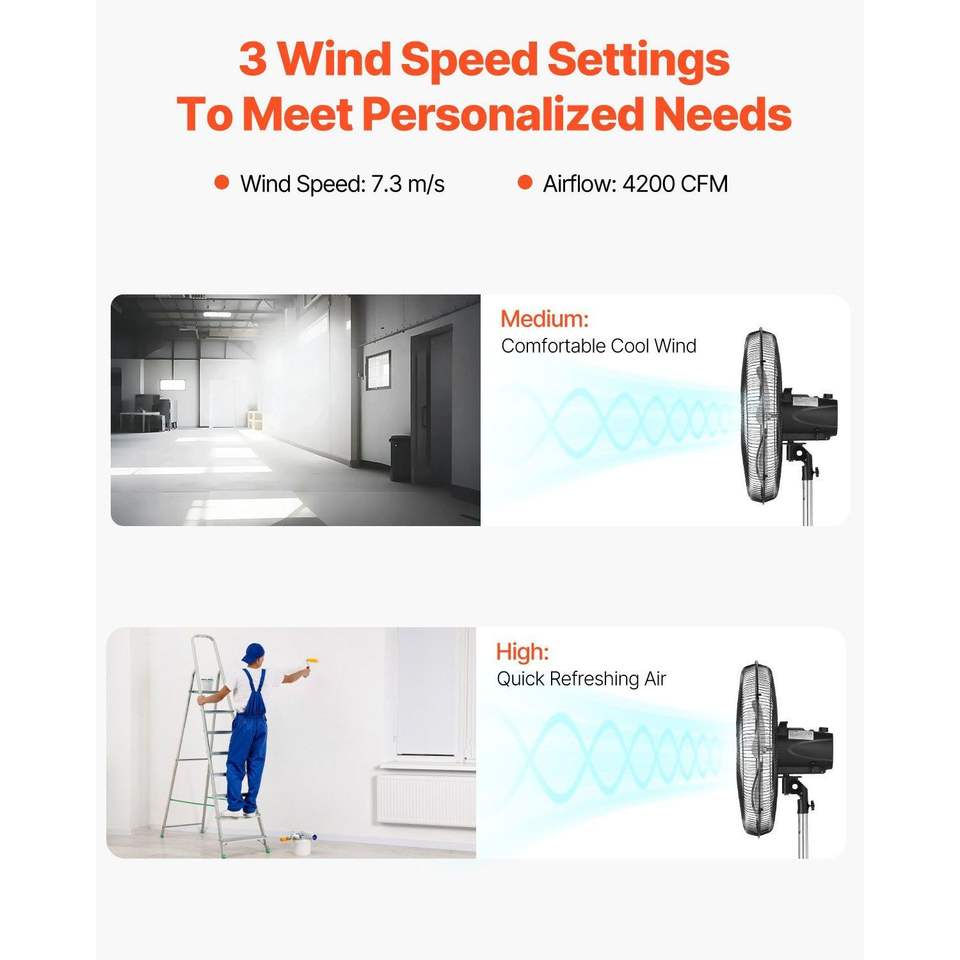 Ventilatore a piantana industriale oscillante a 90 gradi da 20 pollici con 3 velocità regolabili, ventilatore a torre ad alta potenza con altezza regolabile