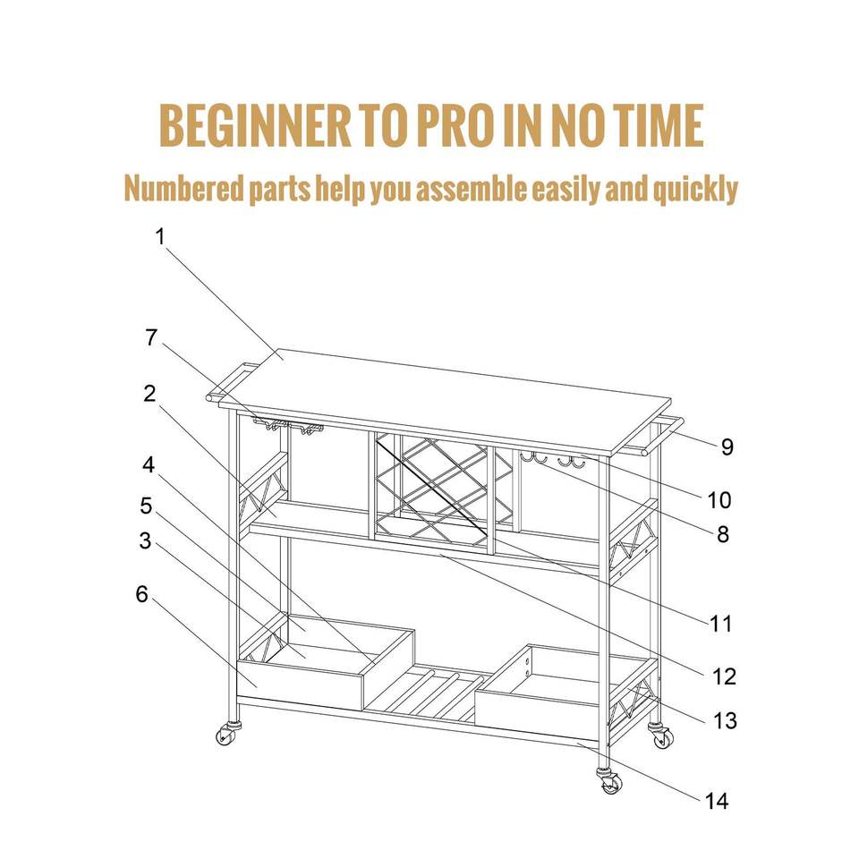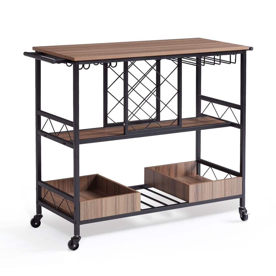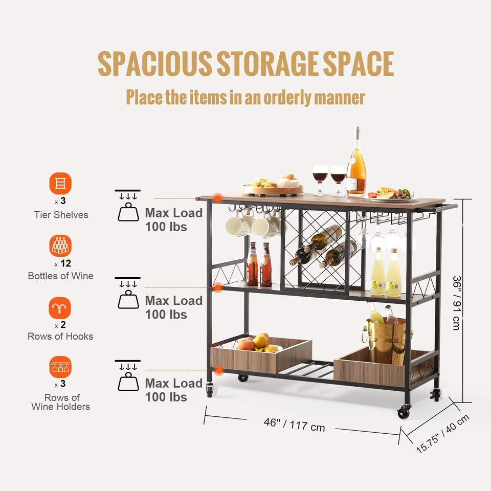 Carrello Bar Industriale a 3 Ripiani con Ruote Bloccabili, Capacità 136 kg, Stazione di Servizio e Bevande per Uso Domestico, Carrello Mobile Portabevande e Vino