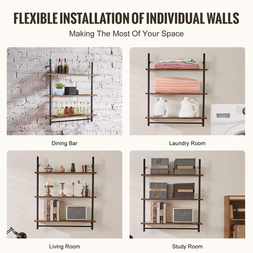 Mensola da esposizione industriale a 3 livelli da parete con tubo 32x9, 84 pollici per cucina e camera da letto