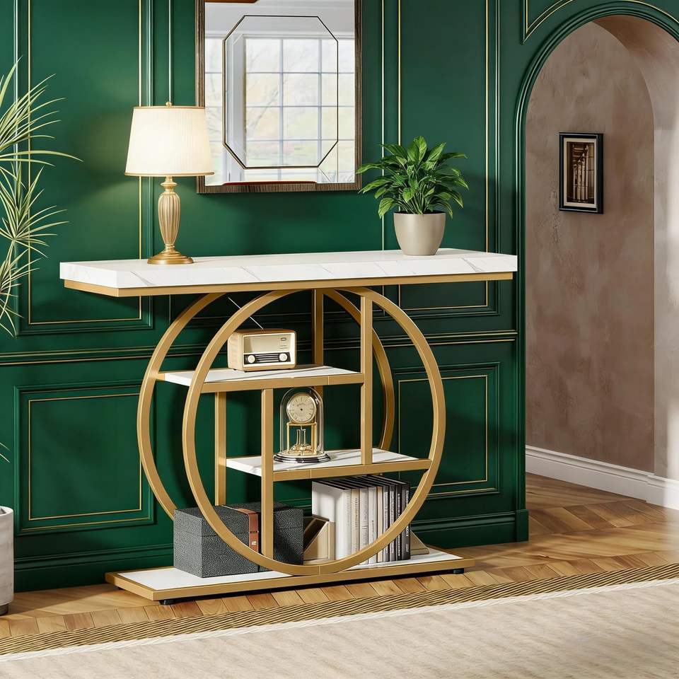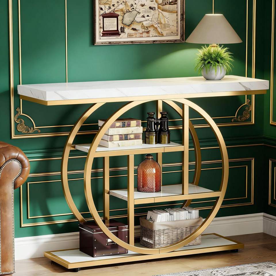 Consolle industriale a 4 livelli con base circolare per divano o ingresso