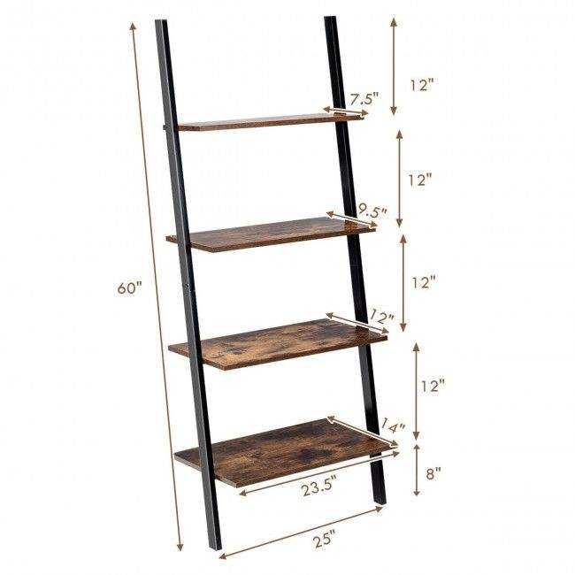 Libreria Industriale a 4 Ripiani da Parete con Struttura in Metallo, Scaffali e Librerie Multiuso