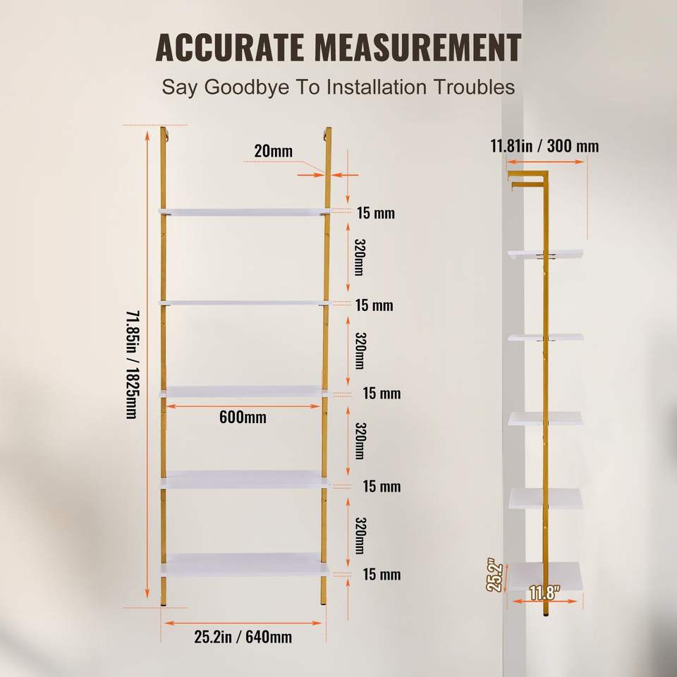 Industrial 5 Tier 24x11.8in Wall-Mount Gold White Square Pipe Shelf 24x11.8in Wall-Mount Gold White