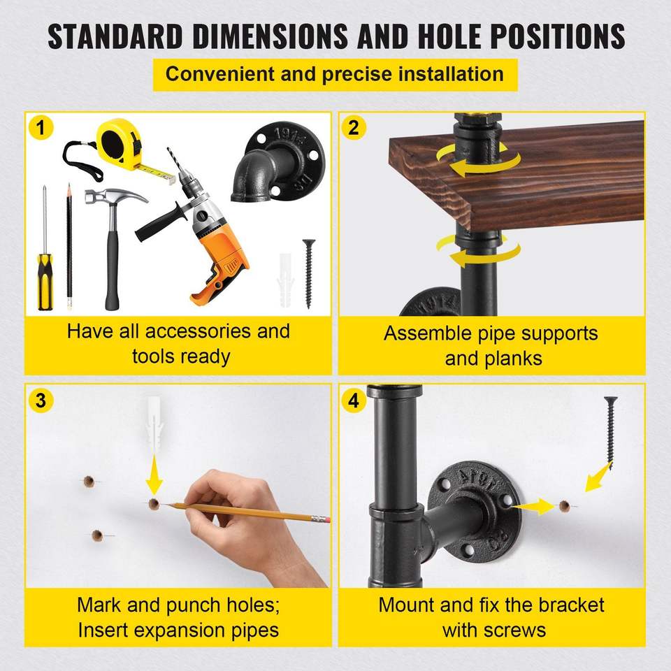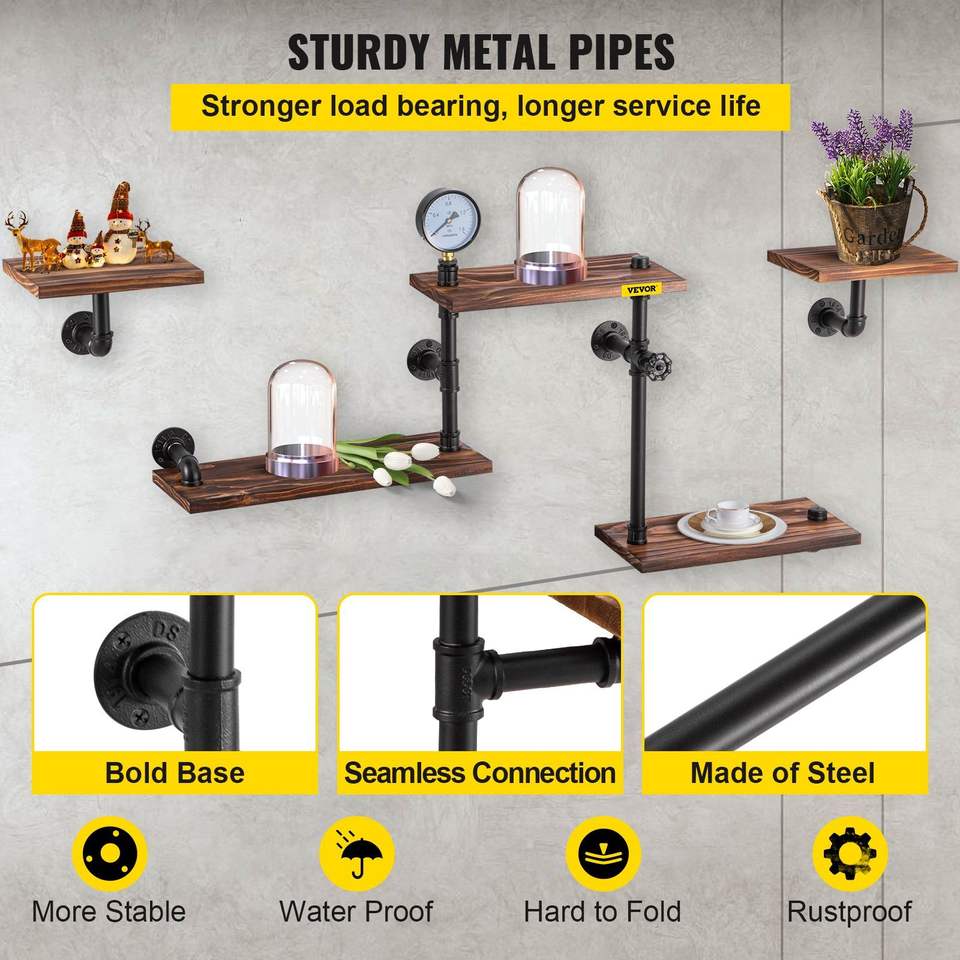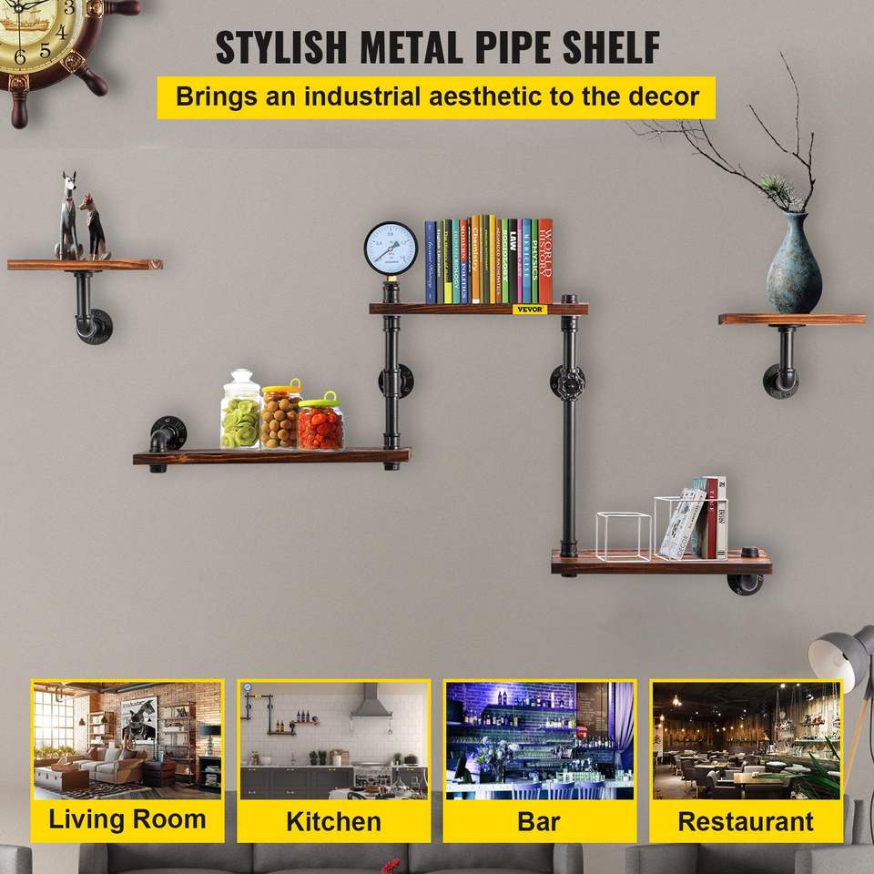 Industrial 5-Tier Rustic Floating Wood Plank Pipe Shelves 47x28x9 Inch Wall Mounted DIY Bookshelf for Bar Farmhouse Wall Shelves