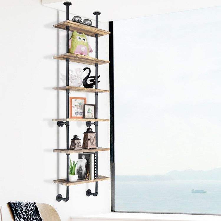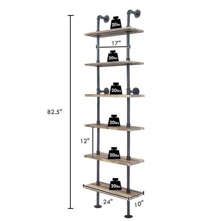 Libreria Industriale a 6 Ripiani Montata a Parete, Design Moderno e Elegante per Casa o Ufficio