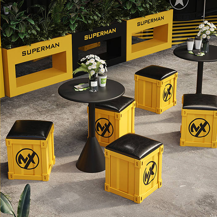 Industrial Bar Furniture Ottoman Stools Creative Metal Container Style Bar Stool Chairs