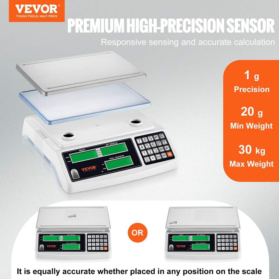 Bilancia Contapezzi Industriale 30 kg x 1 g, Bilancia Digitale per Monete e Componenti, Bilancia Elettronica per Inventario con Unità G/kg/lb