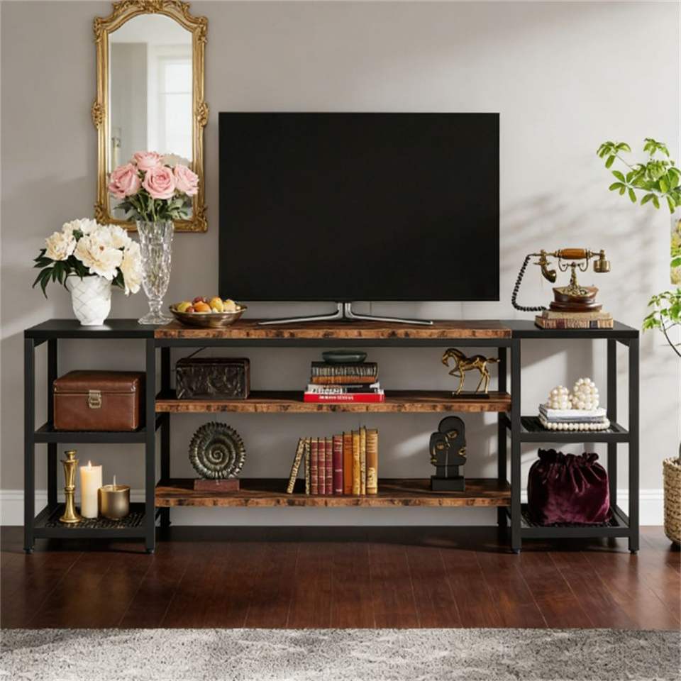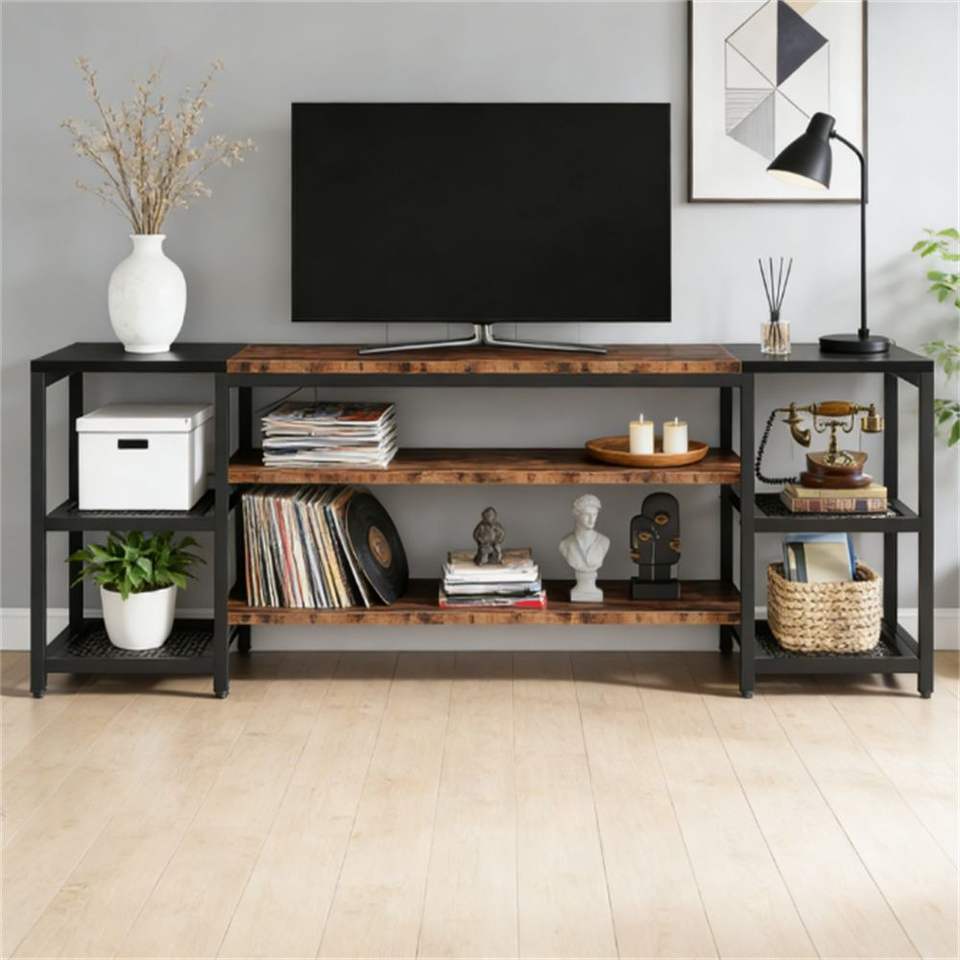 Mobile TV dal Design Industriale con Espositore Unico e Scaffale Portaoggetti