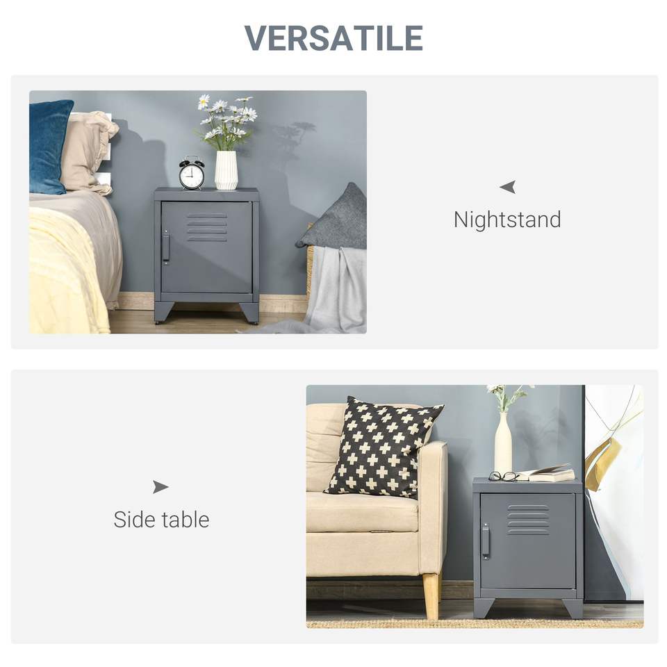 Armadietto Industriale Grigio con Ripiano Regolabile, Tavolino Laterale e Anta per Soggiorno