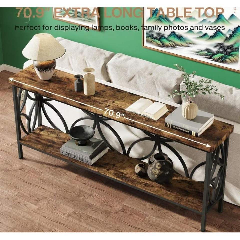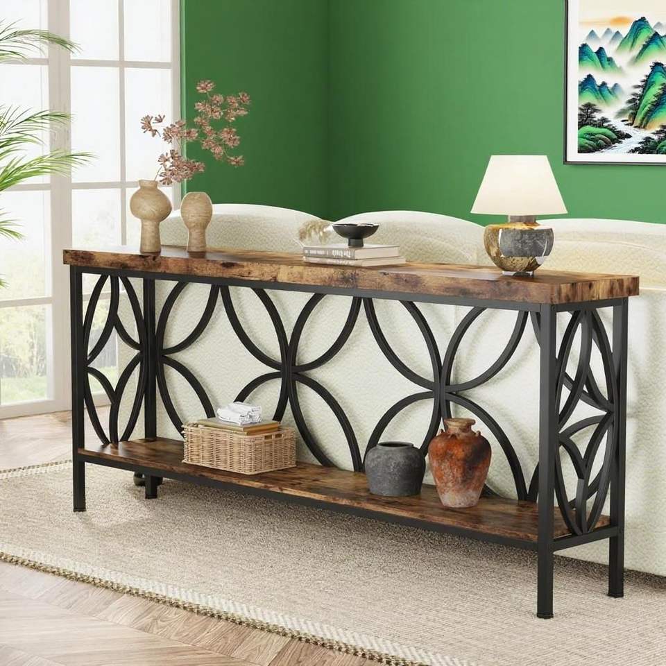 Consolle Industriale Lunga con Contenitore per Ingresso, Tavolo Consolle da Ingresso Dietro il Divano