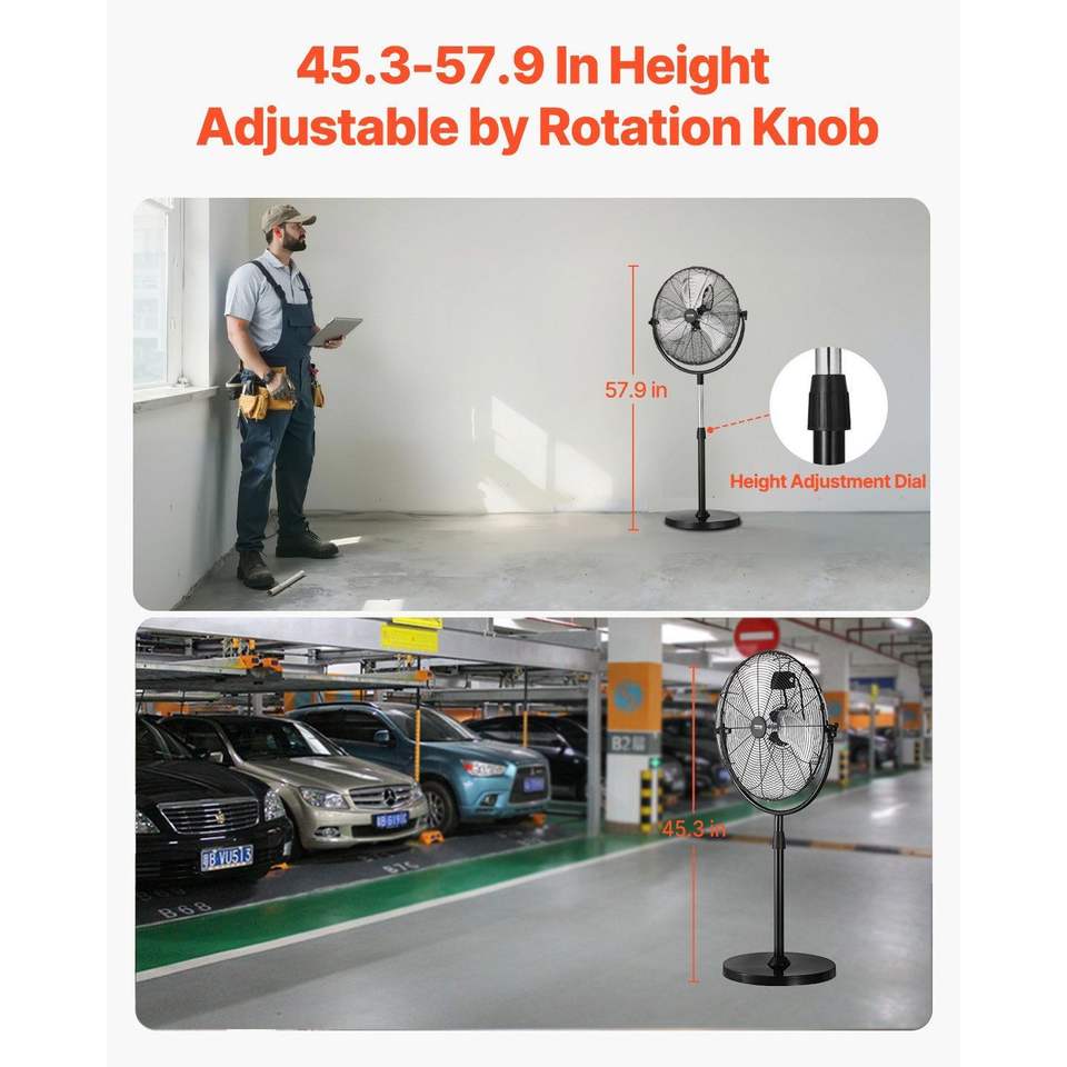 Ventilatore Industriale a Piantana con Base da 18 Pollici e Altezza Regolabile da 45,3-57,9 Pollici, Ventilatore da Pavimento a 3 Velocità, Ventilatore a Colonna da 57,9 Pollici