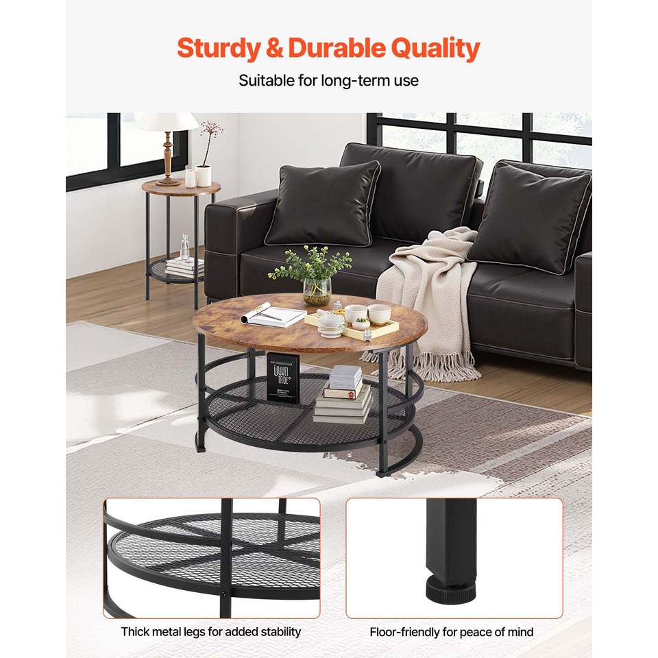 Industrial-Style 3-Piece Coffee Table Set 31.5 in Round Living Room Table with 2 End Side Tables Easy Assembly Required