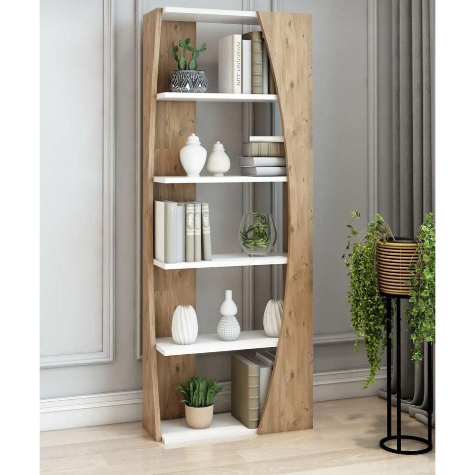 Libreria ad angolo alta 5 livelli con 4 ganci a forma di L elegante libreria alta per l'home Office