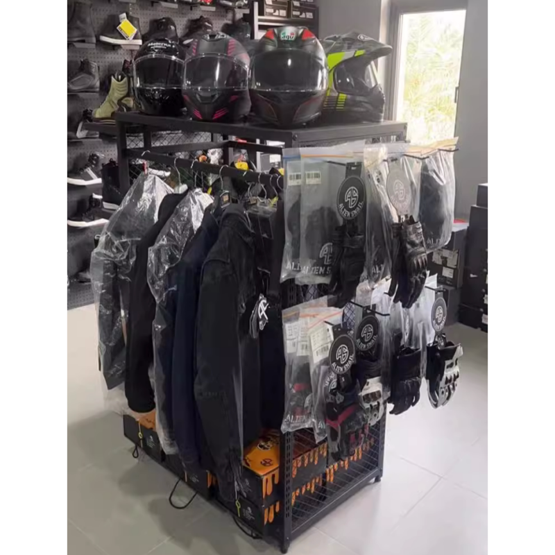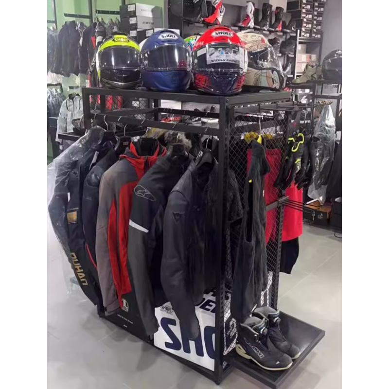 Stile industriale appendiabiti da uomo fabbrica personalizzato casco moto espositore per negozio di abbigliamento