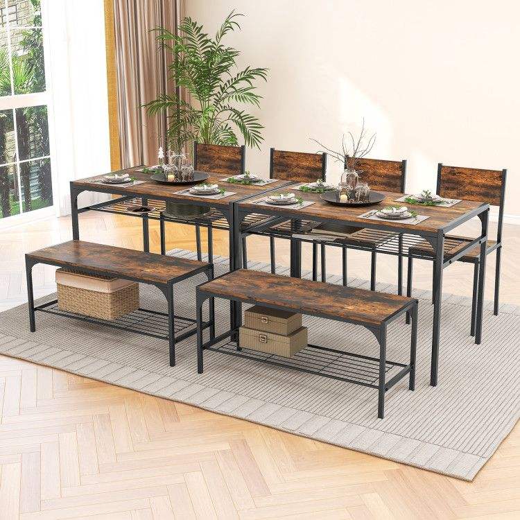 Set Tavolo da Cucina Rettangolare Stile Industriale con Panca e Sedie, Arredamento per Sala da Pranzo