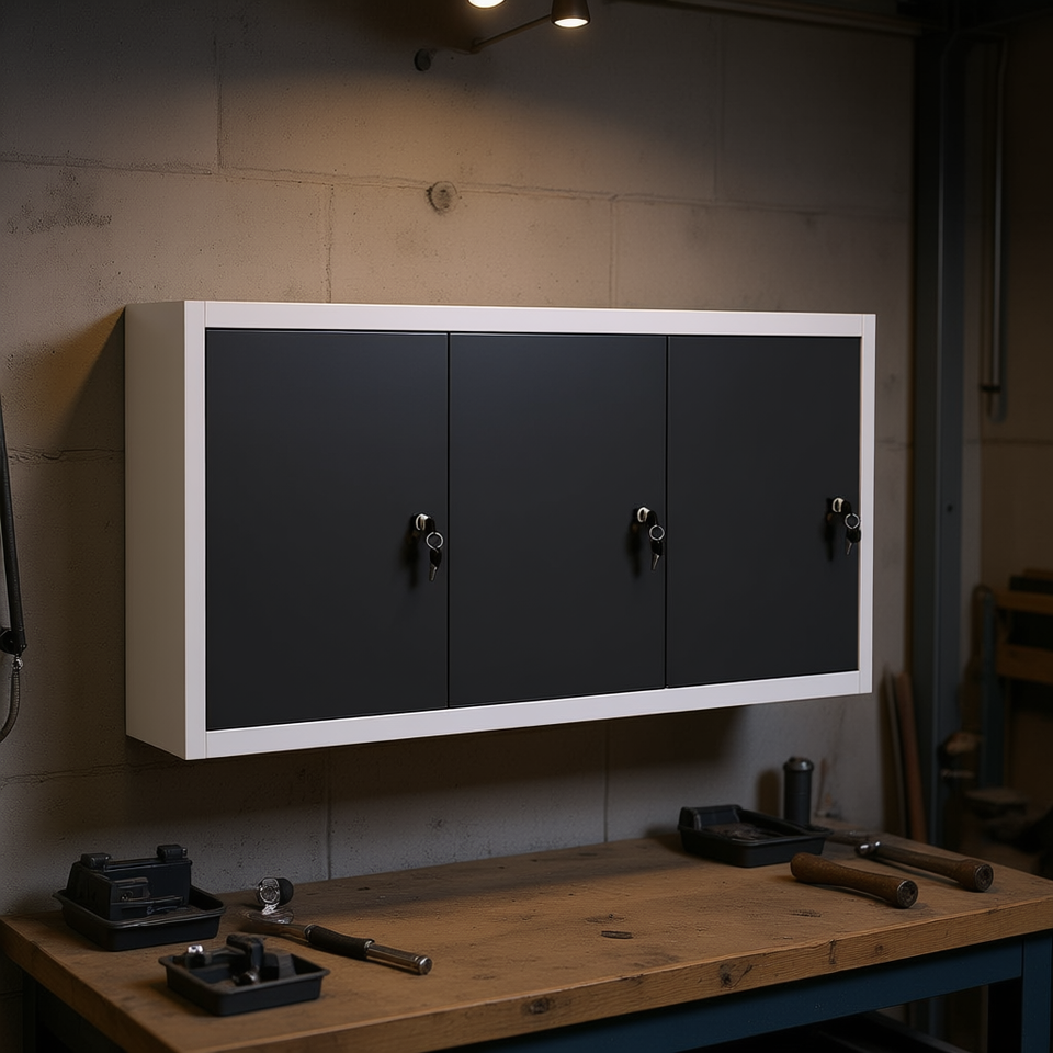 Armadietto Portautensili da Parete Stile Industriale in Metallo Grigio con Serratura a Chiave e Garanzia di 3 Anni