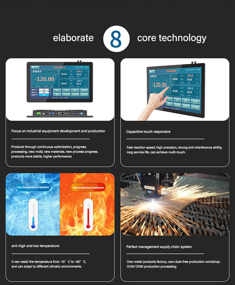 Pannello tattile industriale supporto per pannello PC integrato ipc 15.6/18.5/21.5 pollici Fanless IP65 impermeabile 500nits i7 CPU Linux Computer