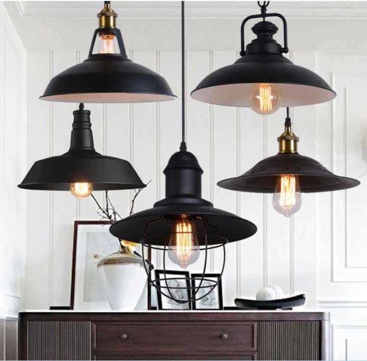 Industrial Vintage Multi-style Black Metal Lampshade E27 Indoor Decorative Pendant Light for Restaurant Bar