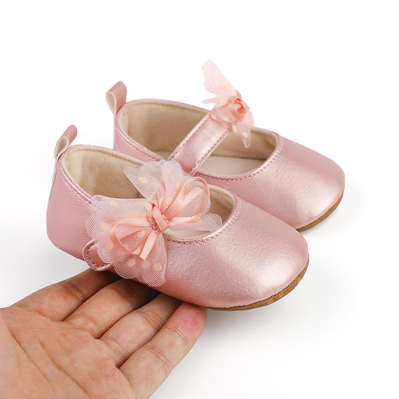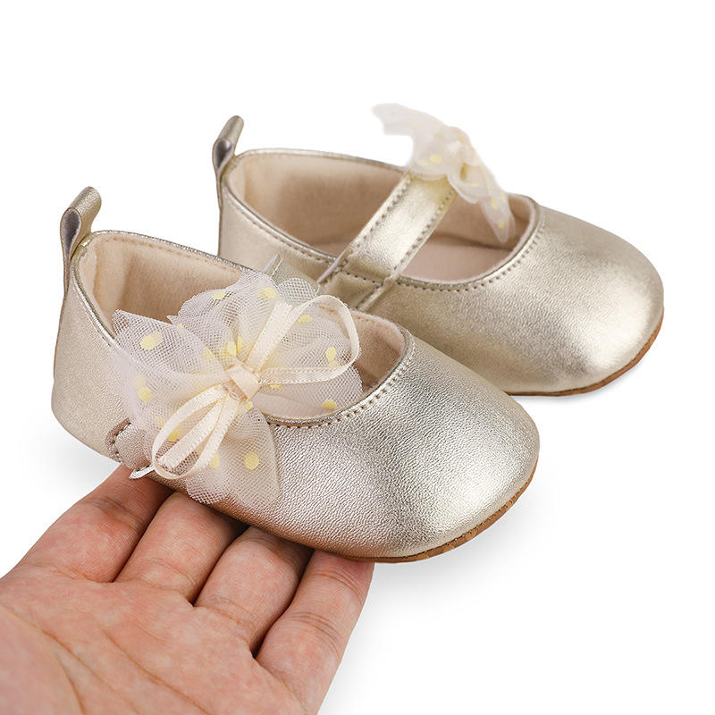 Scarpe da Principessa per Neonata, Scintillanti con Stampa a Pois, Fiocco in Rete, Ballerine Antiscivolo, Ciabatte da Cerimonia, Adorabili Scarpine per Bambina