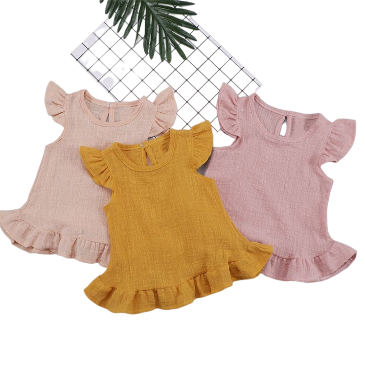 Infants & Toddler Lovely Children Summer Dress Baby Bamboo Linen Ruffle Girl Dresses