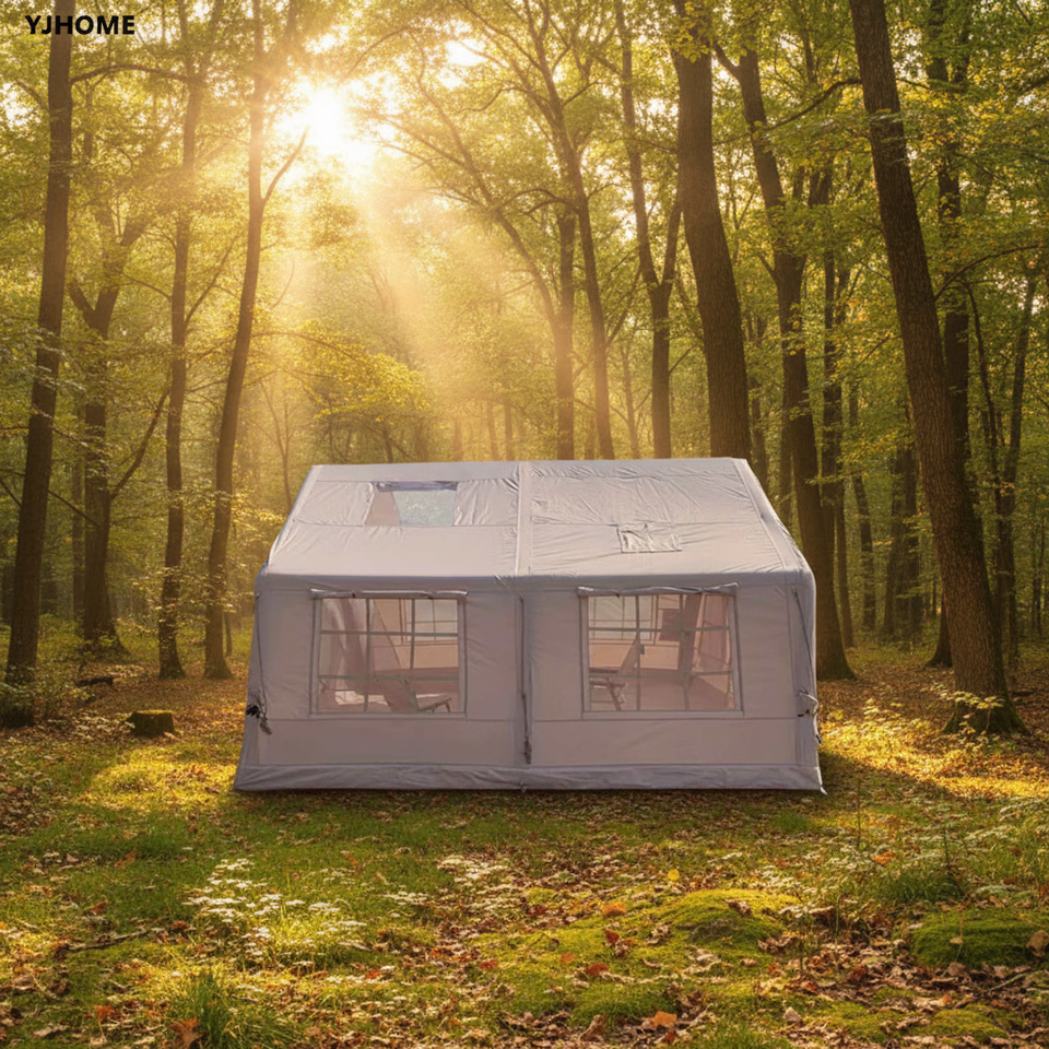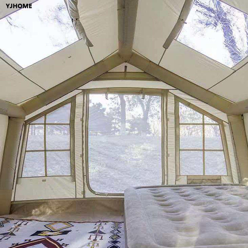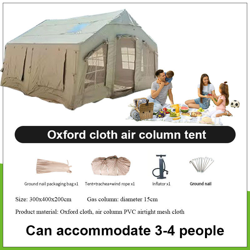 Pompa ad aria manuale per tenda da campeggio gonfiabile, portatile, facile da montare, impermeabile, antivento, 3-4 stagioni, in tessuto Oxford, con finestra a rete e finestra per la canna fumaria, due porte