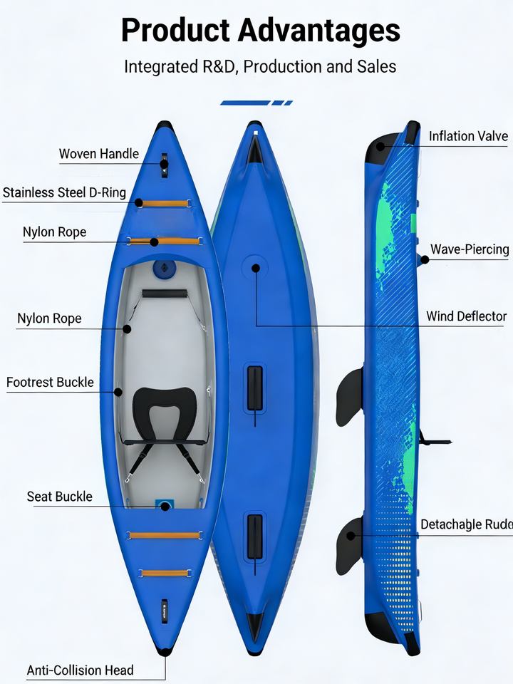 Gommone Gonfiabile con Tecnologia Drop Stitch, Doppia Parete Leggera e Cuciture Quadriplicate Sovrapposte per Touring e Pesca