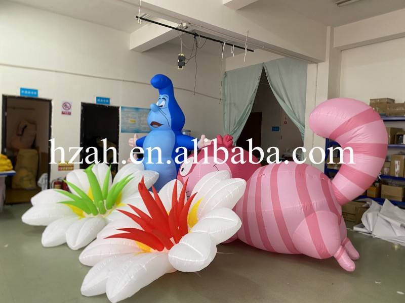 Inflatable LED Light Flower Caterpillar and Cheshire Cat Cartoon Characters From Alice in Wonderland