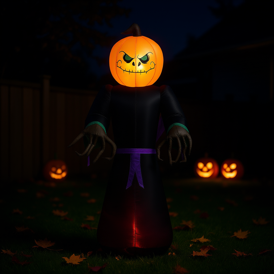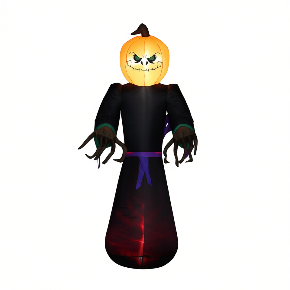 Decorazione Gonfiabile di Halloween a Forma di Zucca, Materiale PVC, Illuminata, Alta 2,4 Metri per Esposizione Festiva