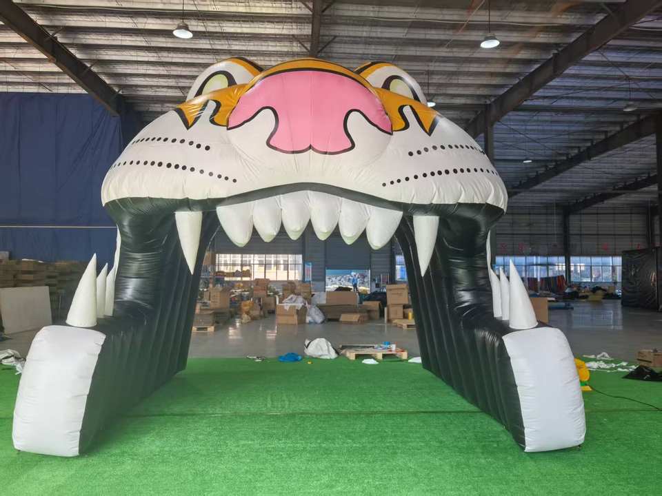 Tunnel Gonfiabile a Forma di Testa di Tigre con Ventilatore per Eventi Sportivi, Ingresso per Attività Commerciali, Tunnel Gonfiabile a Forma di Animale