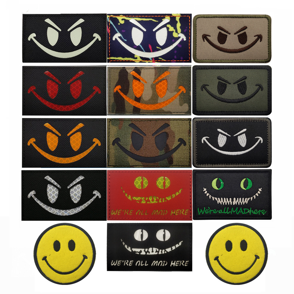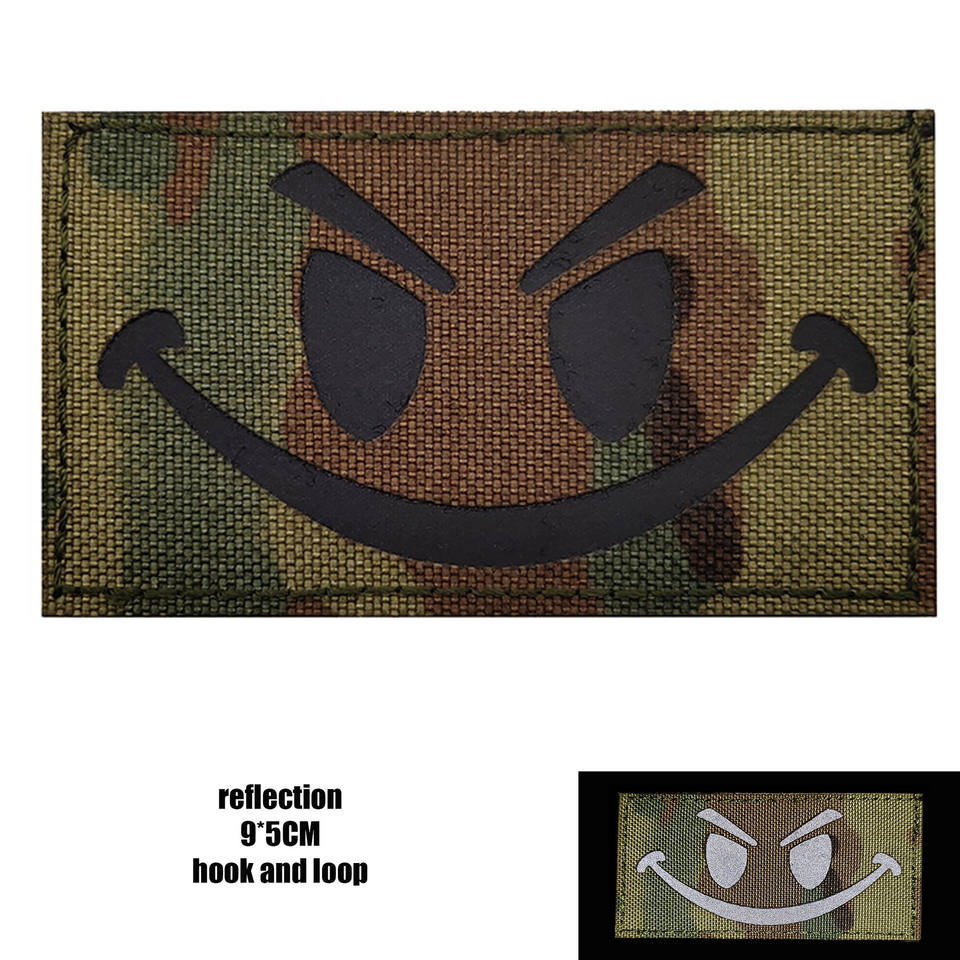 Patch Riflettente con Faccina Sorridente in Feltro PU Ecologico Fatto a Mano, Termoadesivo a Infrarossi per Zaini e Cappelli da Esterno