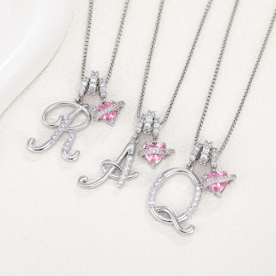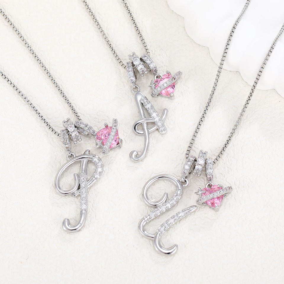 Collana con lettere iniziali con cuore rosa scintillante e zircone con collana alfabeto con ciondolo donna gioielli d'amore