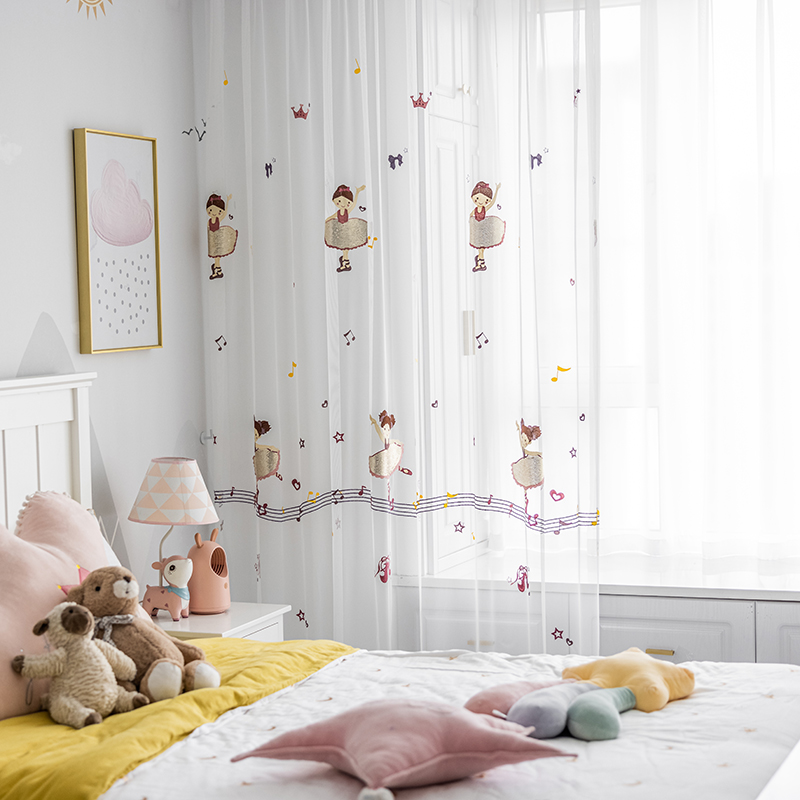 Innermor Sweet Girl Bedroom Cute Cartoon Pattern Embroidered Curtains Soft Tulle Curtain for Baby Room