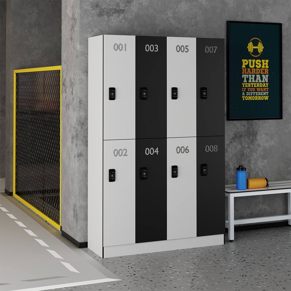 Armadietto Spogliatoio in Acciaio a 4 Ante di Grande Capacità con Design Innovativo a Z per Uso Pubblico, Dimensioni Personalizzabili