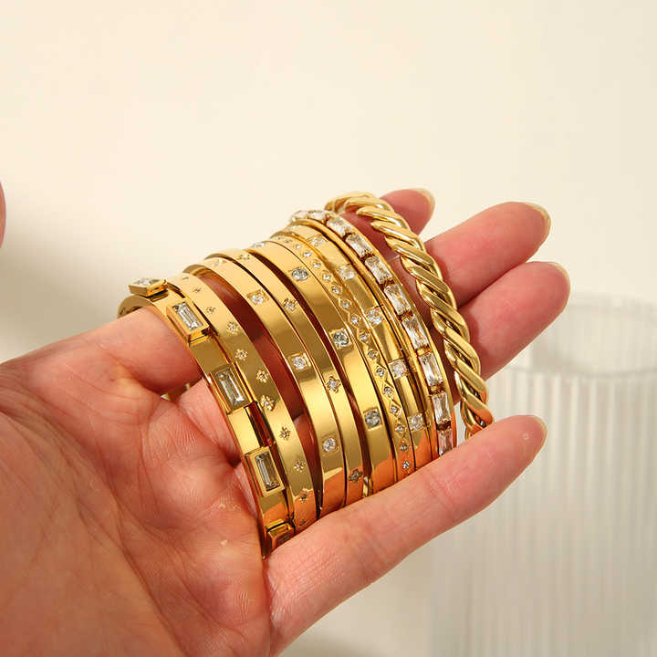 Bracciali Bangle Best-Seller di Instagram in Acciaio Inossidabile al Titanio con Placcatura PVD in Oro 18k e Zirconi a Fiore con Diamanti per Ragazze, Impermeabili