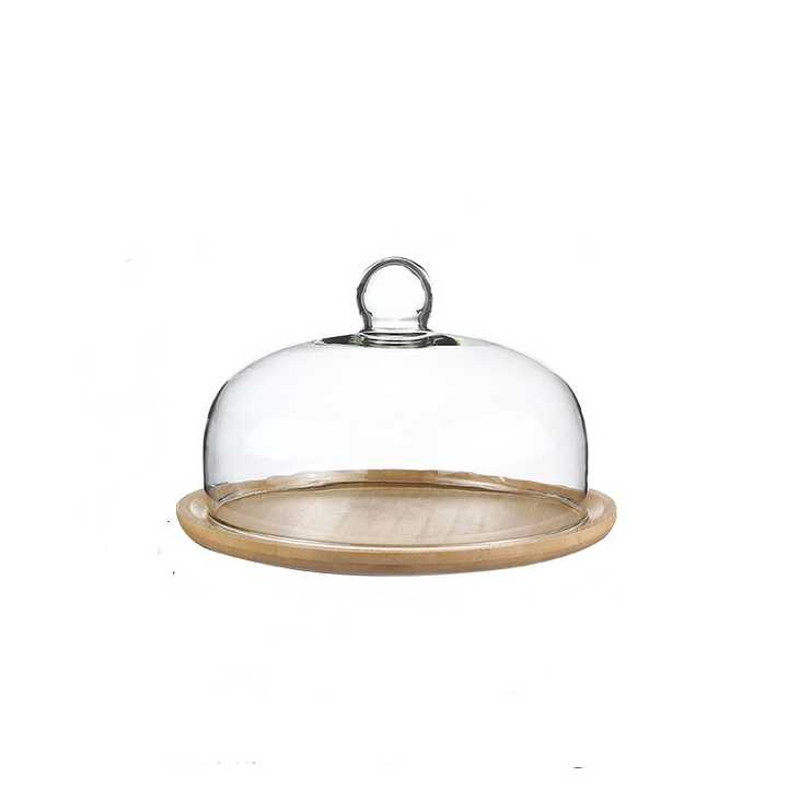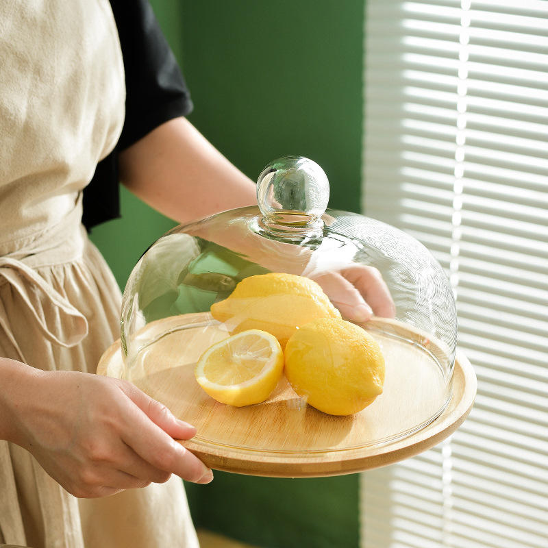 Ins Cake Plate Transparent Glass Cover with Tray Bread Cake Dustproof Display