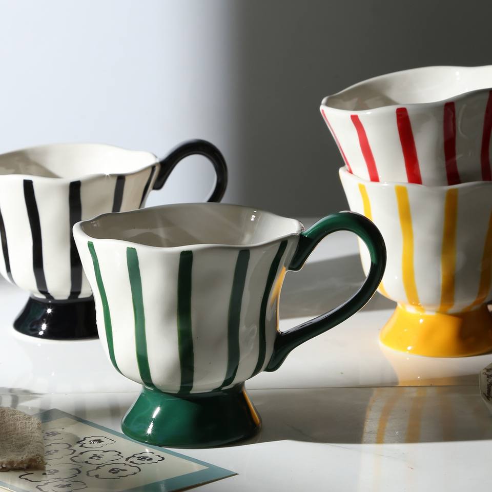 Tazza in Ceramica Fatta a Mano con Motivo Floreale Sottosmalto, Coppa Moderna per Dessert e Gelato, Tazza Decorativa con Piede Alto, Regalo di Nozze per Coppie