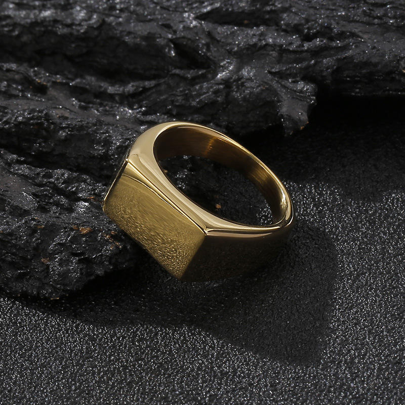 Yunse Anello signet rettangolare liscio in acciaio inossidabile Mod.RI-192 uomo con incisione nome personalizzabile, minimalista