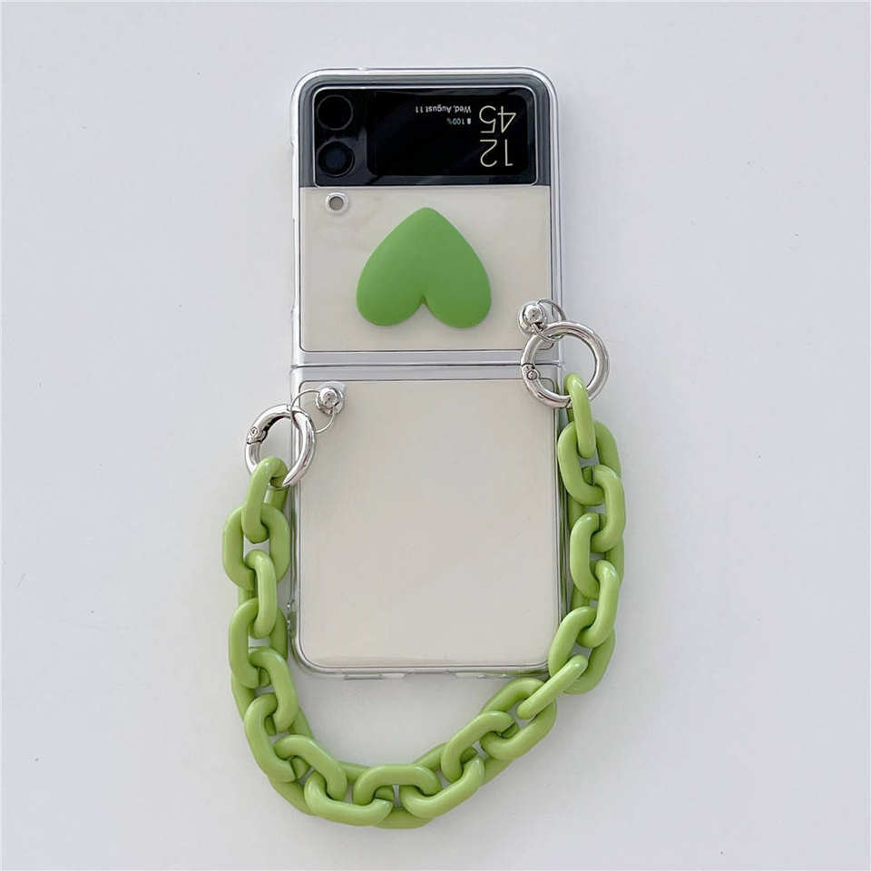 Ins Style Cute Heart Clear Cover nuova custodia pieghevole per telefono con catena per Samsung Galaxy Z Flip4 3