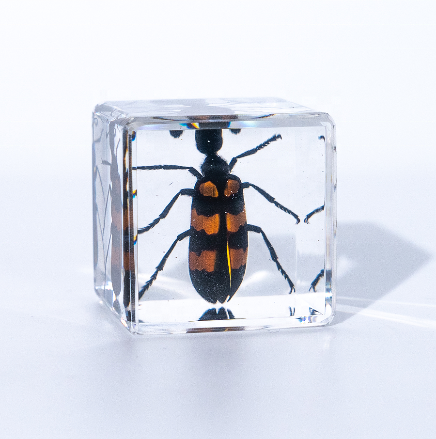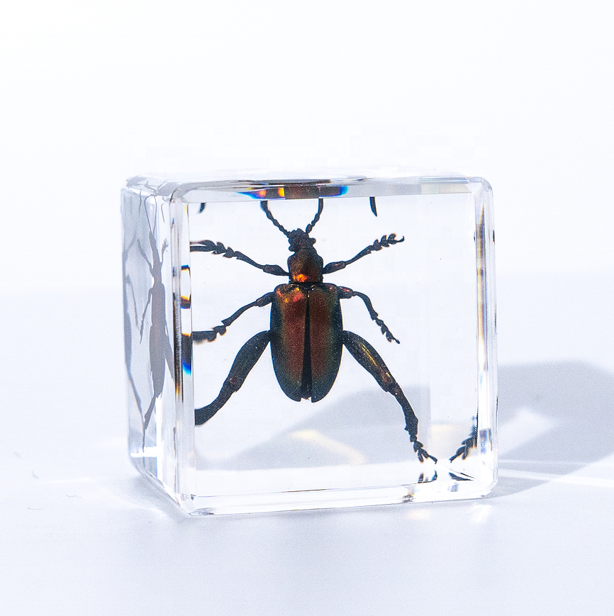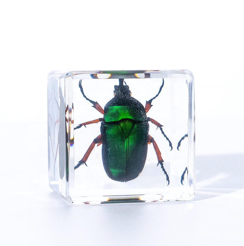 Cubo in resina trasparente con insetto incastonato, ornamento di scarabeo sorprendente, altri risorse didattiche