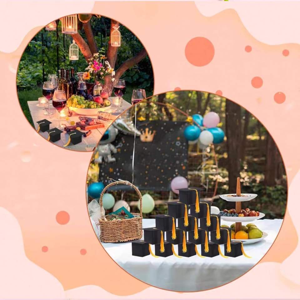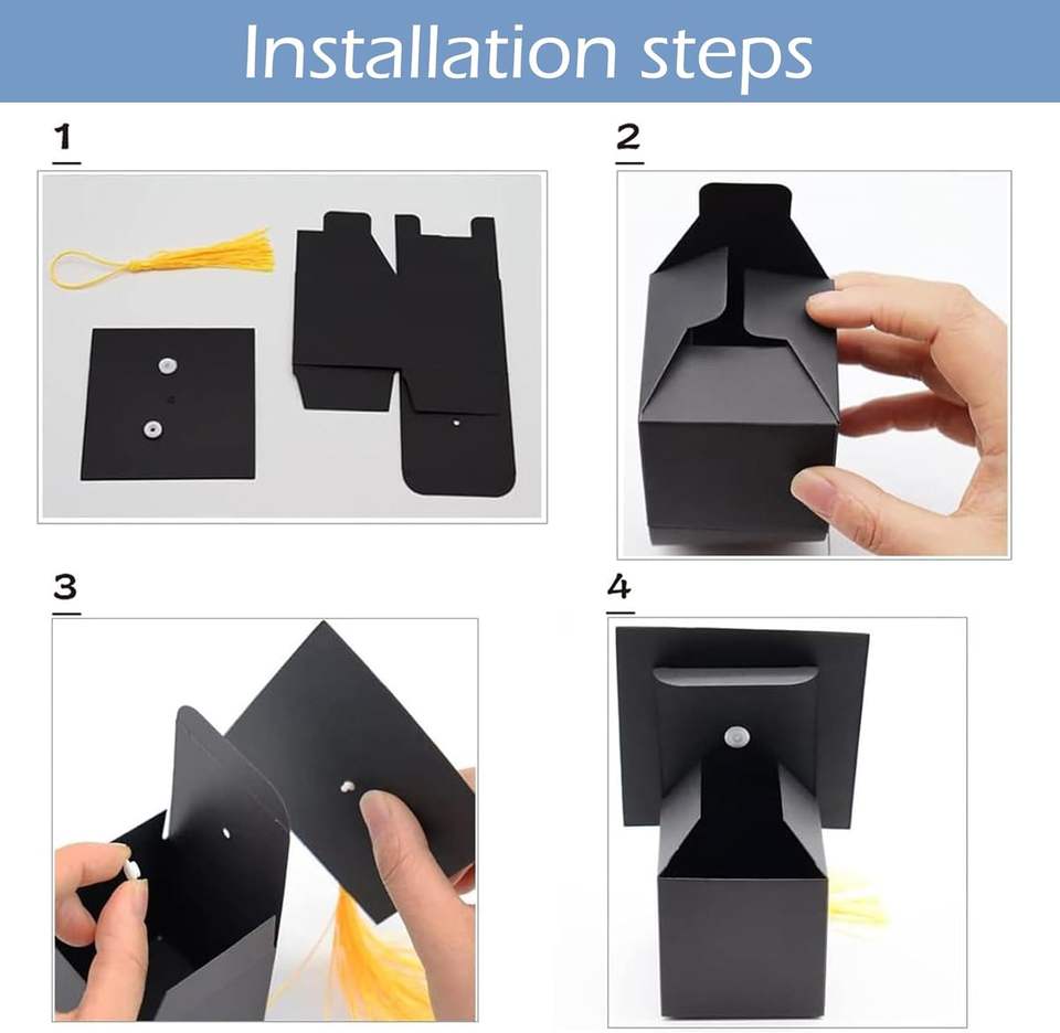 Inspirational Eco-Friendly Recycled Materials Candy Box for PhD Graduation Black Kraft Paper Gift Box with Glitter Sponge Liner