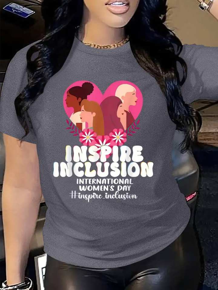 T-shirt da donna Inspire Inclusion, girocollo, manica corta, in maglia di poliestere, per la Giornata Internazionale della Donna, casual, vestibilità regolare