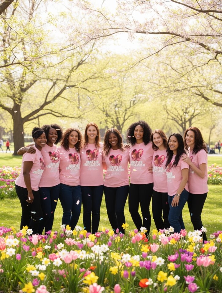 T-Shirt da Donna Inspire Inclusion, Girocollo, Vestibilità Regolare, in Poliestere Lavorato a Maglia, Design per la Giornata Internazionale della Donna