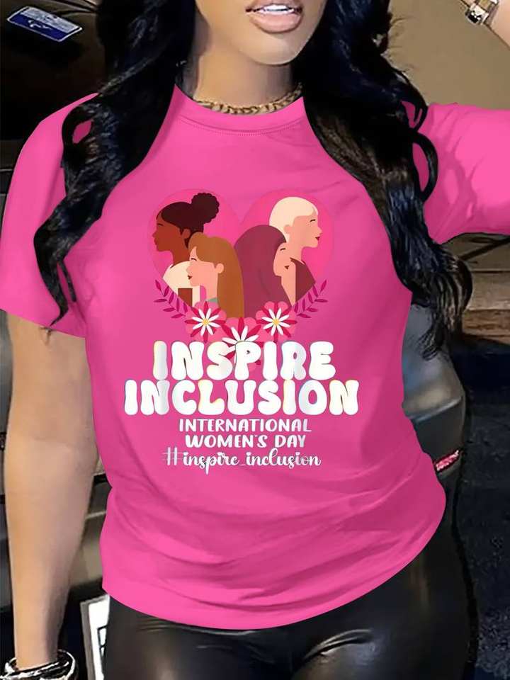 T-Shirt da Donna Inspire Inclusion, Girocollo in Poliestere Lavorato a Maglia, Design Casual per la Giornata Internazionale della Donna