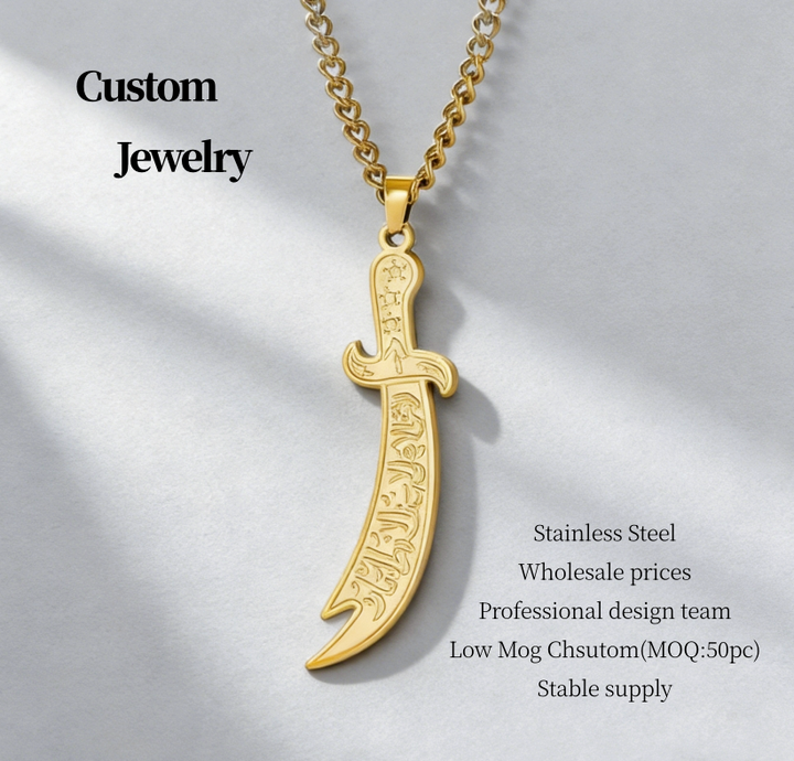 Ispirare la fabbrica di gioielli custom Imam Ali Zulfiqar spada coltello ciondolo collana arabica calligrafia uomo amuleto per gli uomini e le donne