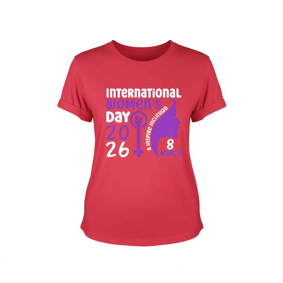 Inspire McKeon Women's T-Shirt International Women's Day 2026 Purple Print Casual Crew Neck Short Sleeve 100% Cotton