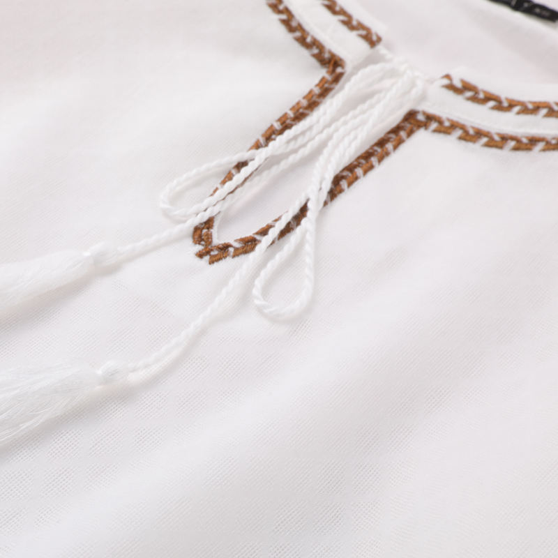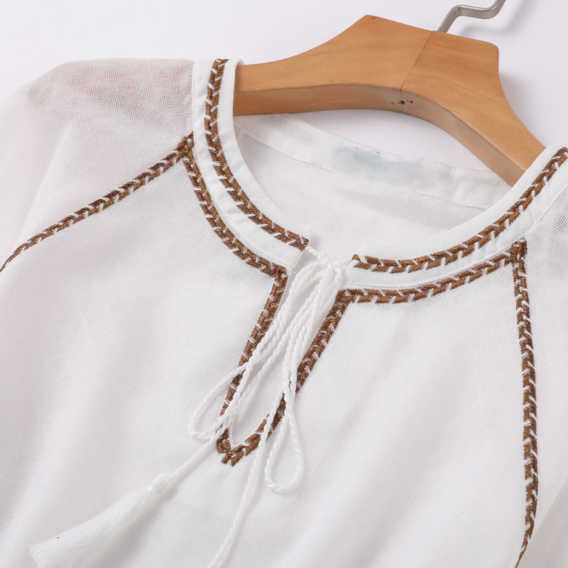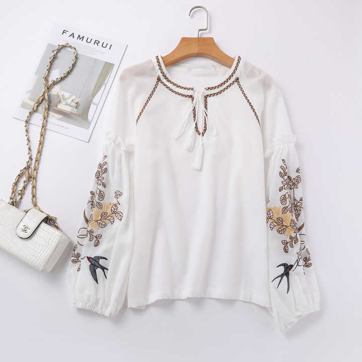 Instock camicetta da donna di moda a buon mercato camicetta da donna bianca a maniche lunghe con ricamo Casual da spiaggia Boho estiva camicetta da donna